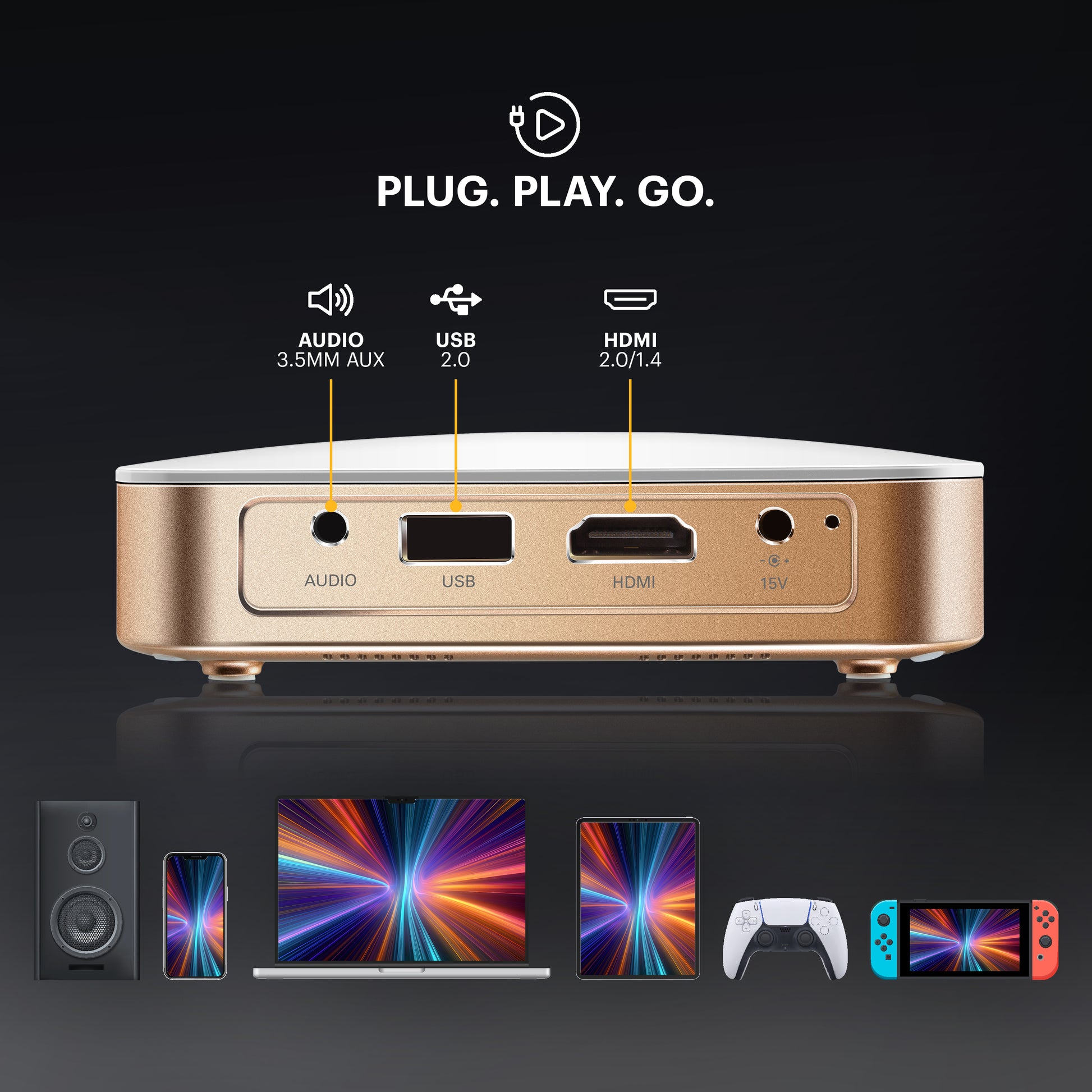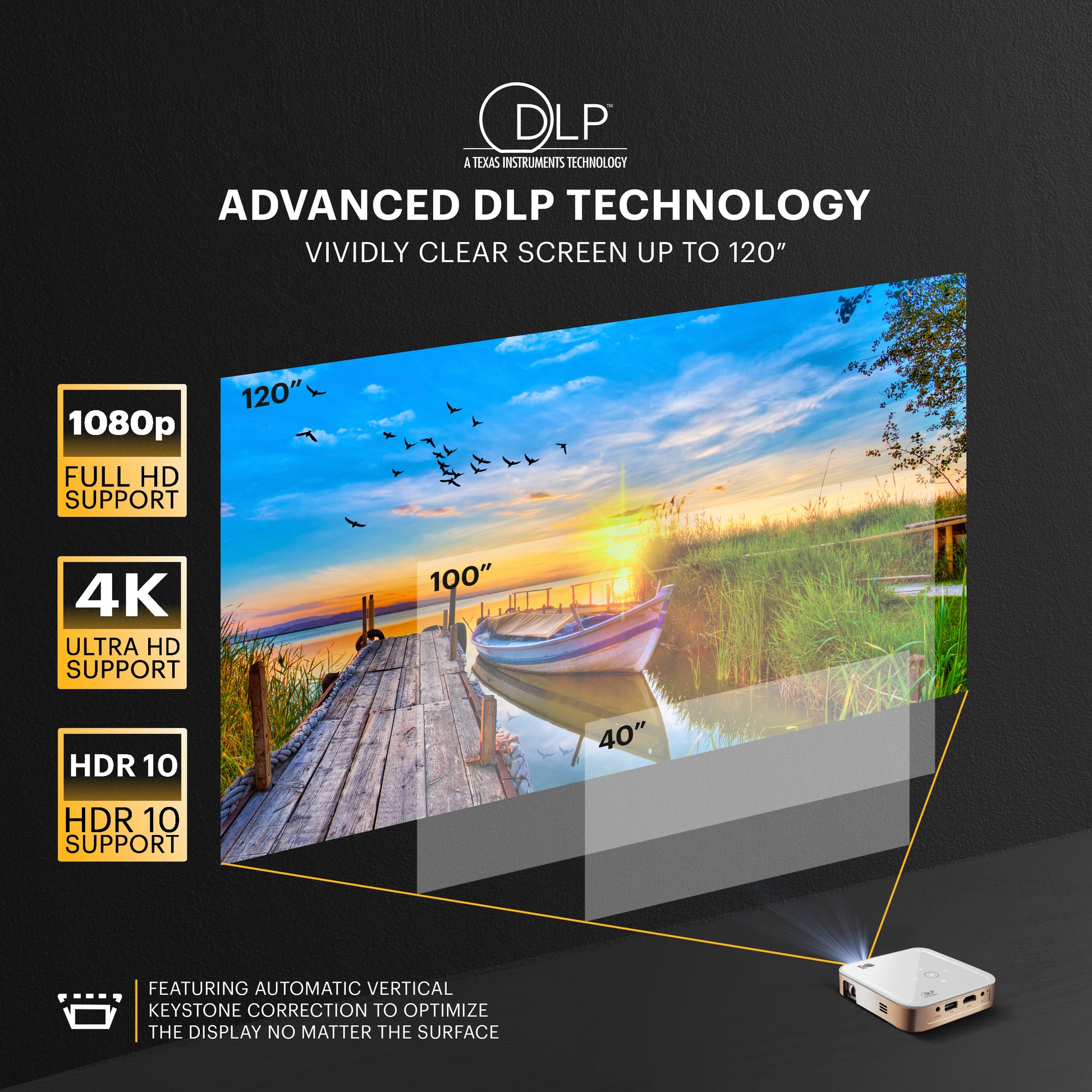 Featuring wired and wireless connectivity options for all your favorite media and a convenient carrying case, the Kodak Luma 350 Basic Projector Kit is your all-in-one portable projector kit. The Android-powered Kodak projector features a clean, easy-to-navigate interface that makes it easy to download your favorite apps and watch movies, TV shows, and more – right from your personal device. But that’s not the only way to view. You can also wirelessly cast compatible devices and seamlessly mirror your presentation, lesson, movie, and more on a perfectly aligned screen, thanks to the auto keystone correction. So, connect, kick back, relax, and get ready for an unparalleled display, anywhere you go.