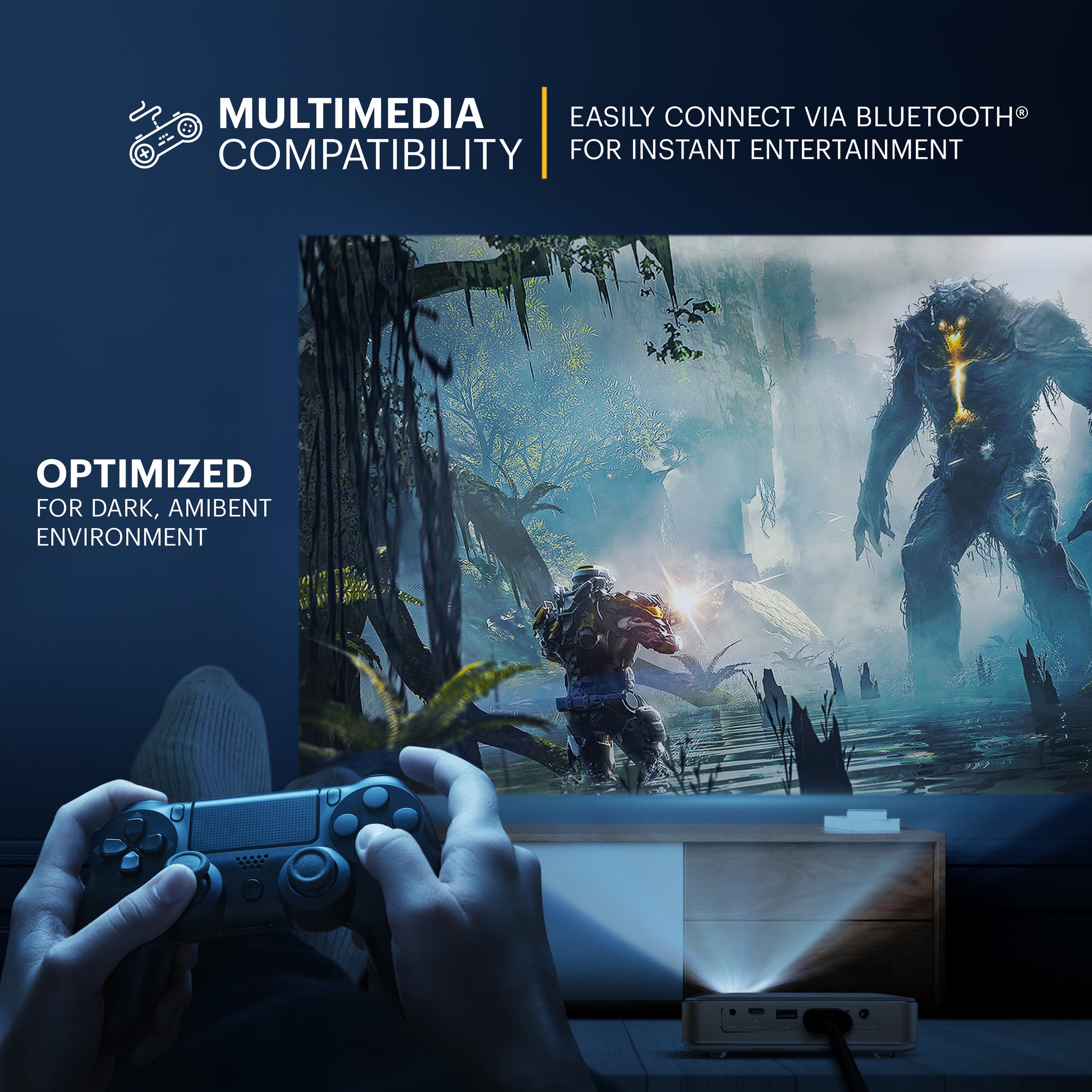 - Project an image up to 150” from as little as 12 feet away